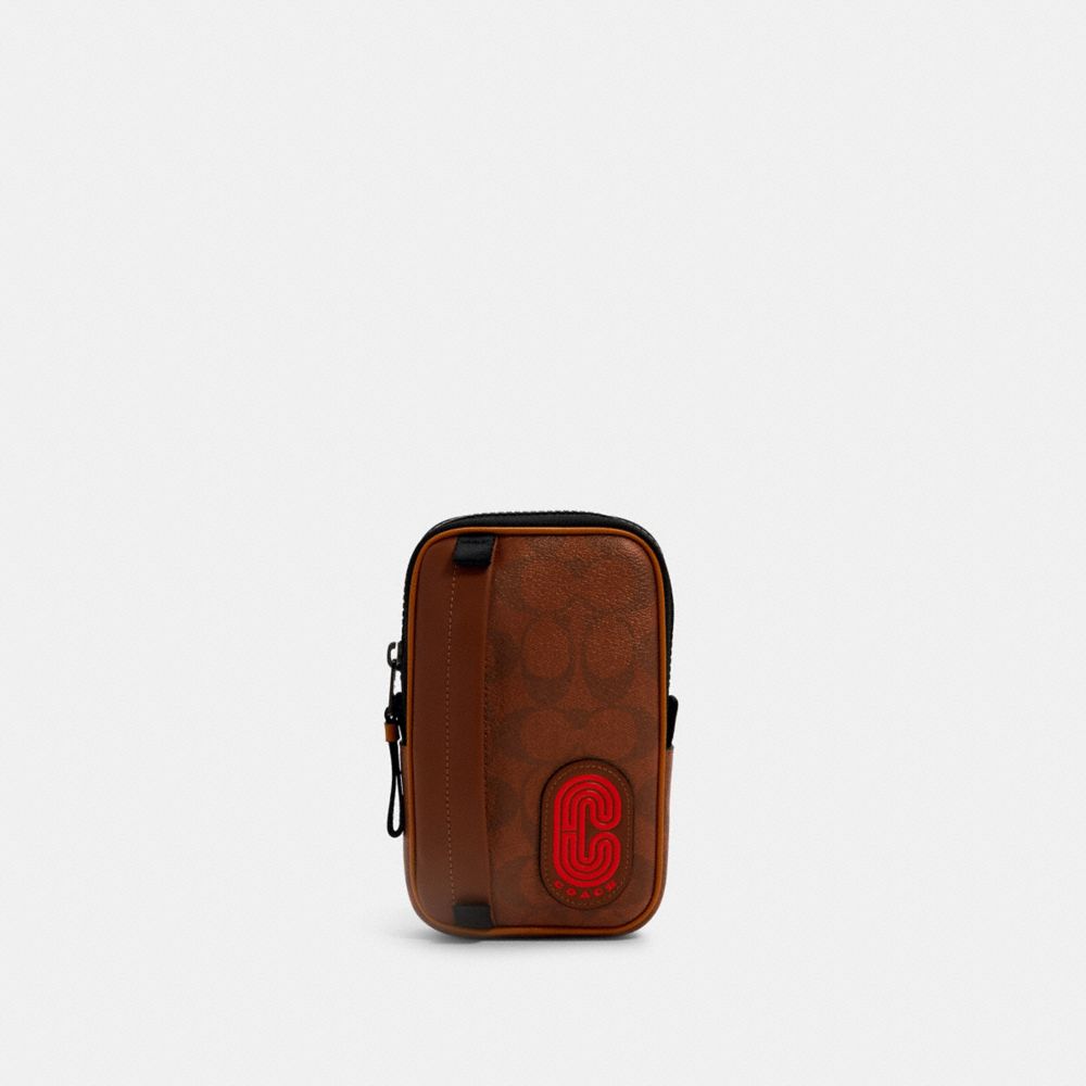 NORTH/SOUTH HYBRID POUCH IN SIGNATURE CANVAS WITH COACH PATCH