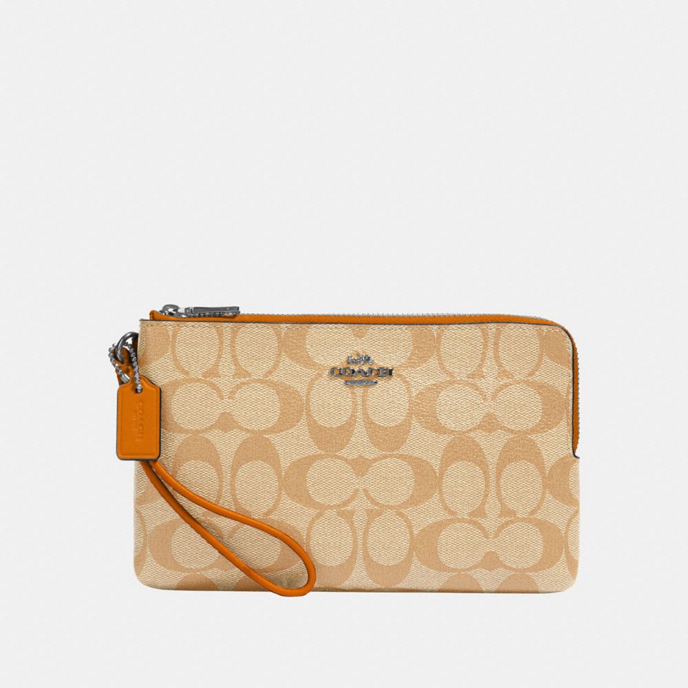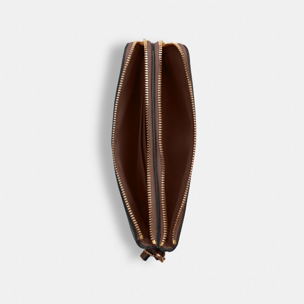 Signature coated canvas| Six credit card slots| Full-length bill compartment| Inside open pockets| Double zip closure, fabric lining| Wrist strap attached| 8 1/2" (L) x 4 1/2" (H) x 1 1/4" (W)| Fits all phone sizes up to an iPhone X and Samsung S7 Edge
