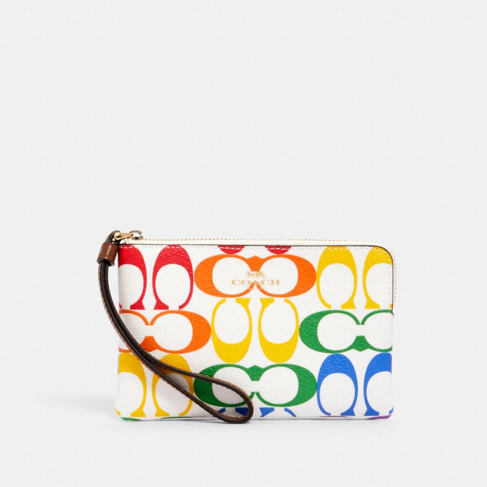 CORNER ZIP WRISTLET IN RAINBOW SIGNATURE CANVAS