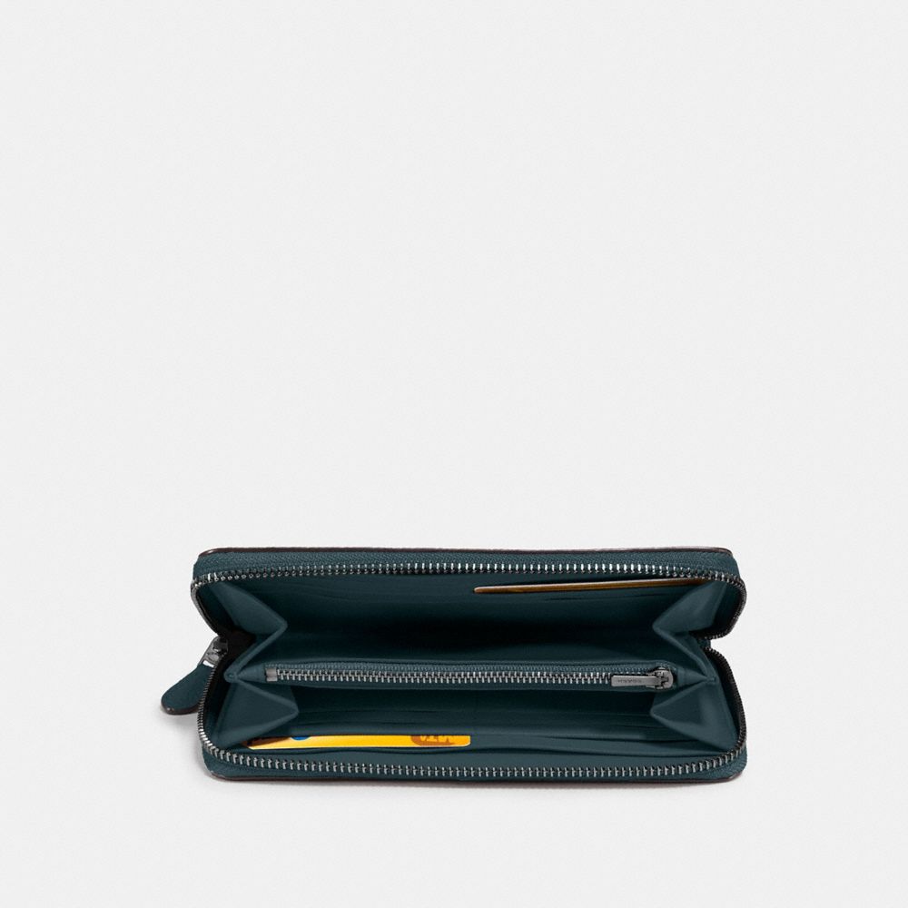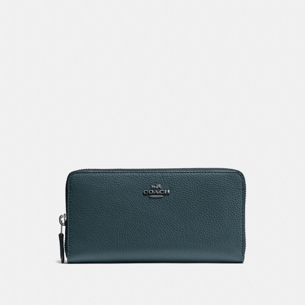 Polished pebble leather| 12 credit card slots| Full-length bill compartments| Zip coin pocket| Zip-around closure| Outside open pocket| 7 1/2" (L) x 4" (H) x 3/4" (W)| Fits all phone sizes up to an iPhone X and Samsung S7 Edge