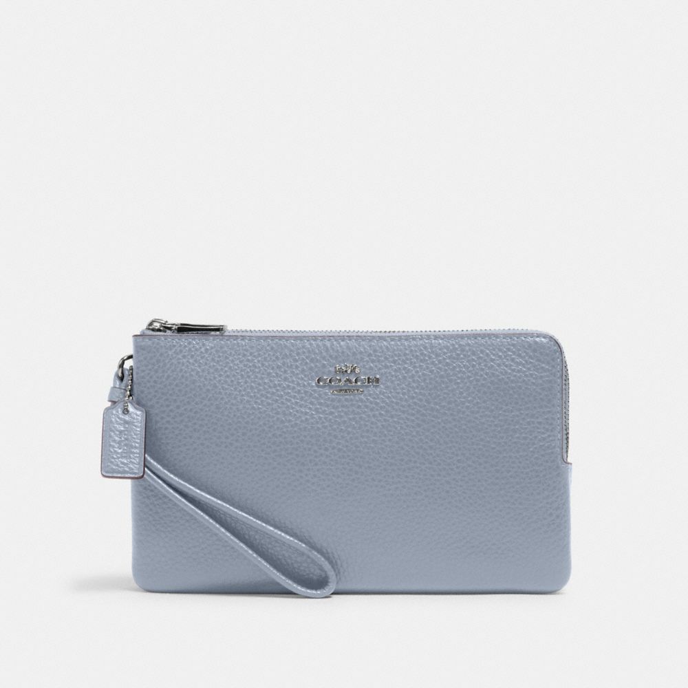 Refined pebble leather| Six credit card slots| Full-length bill compartment| Inside open pockets| Double zip closure, fabric lining| Wrist strap attached| 8 1/2" (L) x 4 1/2" (H) x 1 1/4" (W)| Fits all phone sizes up to an iPhone X and Samsung S7 Edge