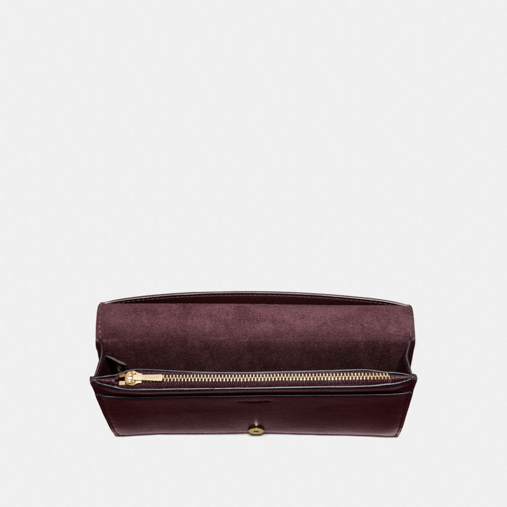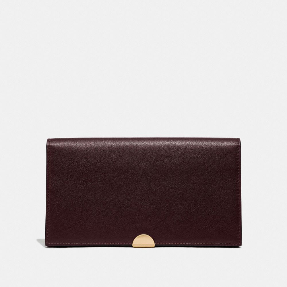 Smooth leather| Eight credit card slots| Full-length bill compartment| Inside zip and open pockets| Snap closure| Outside open pocket| 7 3/4" (L) x 4 1/4" (H)