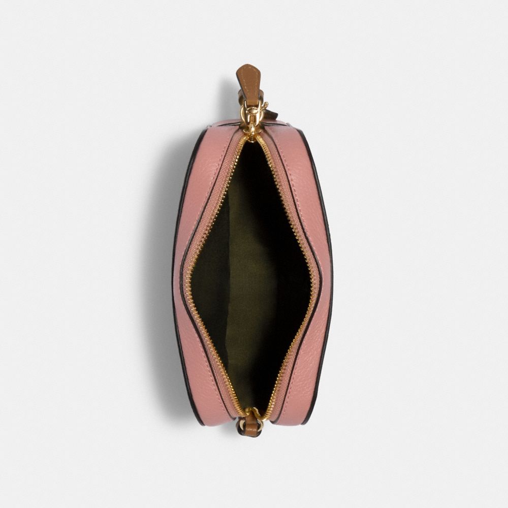 Refined pebble leather| Two credit card slots| Inside multifunction pocket| Zip closure, fabric lining| Outside open pocket| Adjustable strap with 23" drop for shoulder or crossbody wear| 7 1/4" (L) x 5 1/4" (H) x 2" (H)