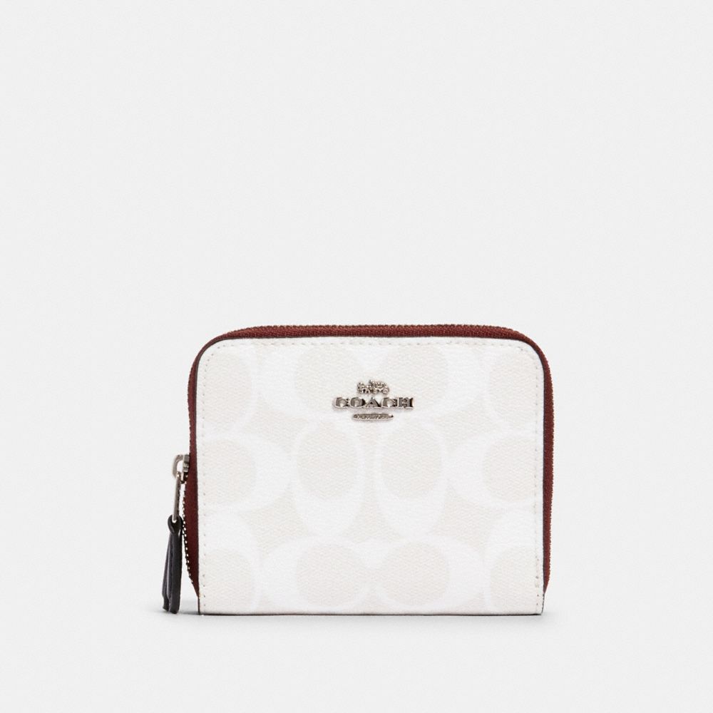 Signature coated canvas with smooth leather details| Six credit card slots| Full-length bill compartment| ID window| Snap coin pocket| Double zip closure| 4 1/4" (L) x 3 1/2" (H) x 1 1/4" (W)