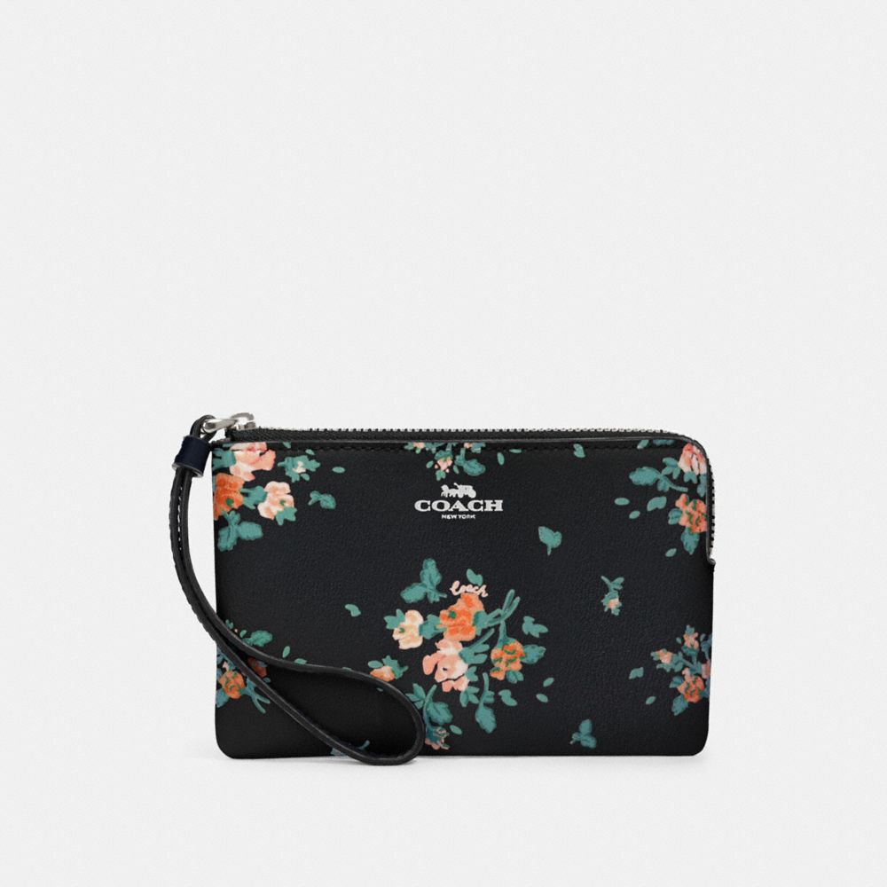 CORNER ZIP WRISTLET WITH ROSE BOUQUET PRINT