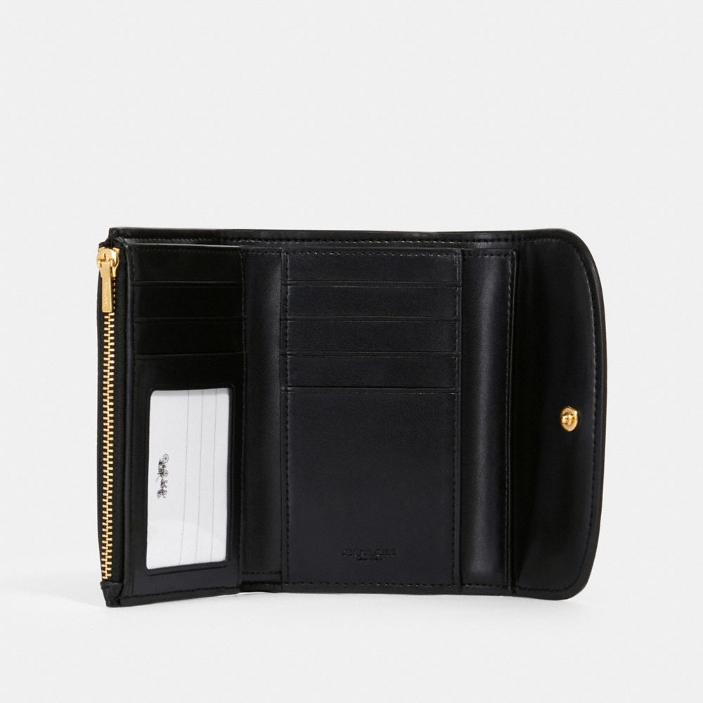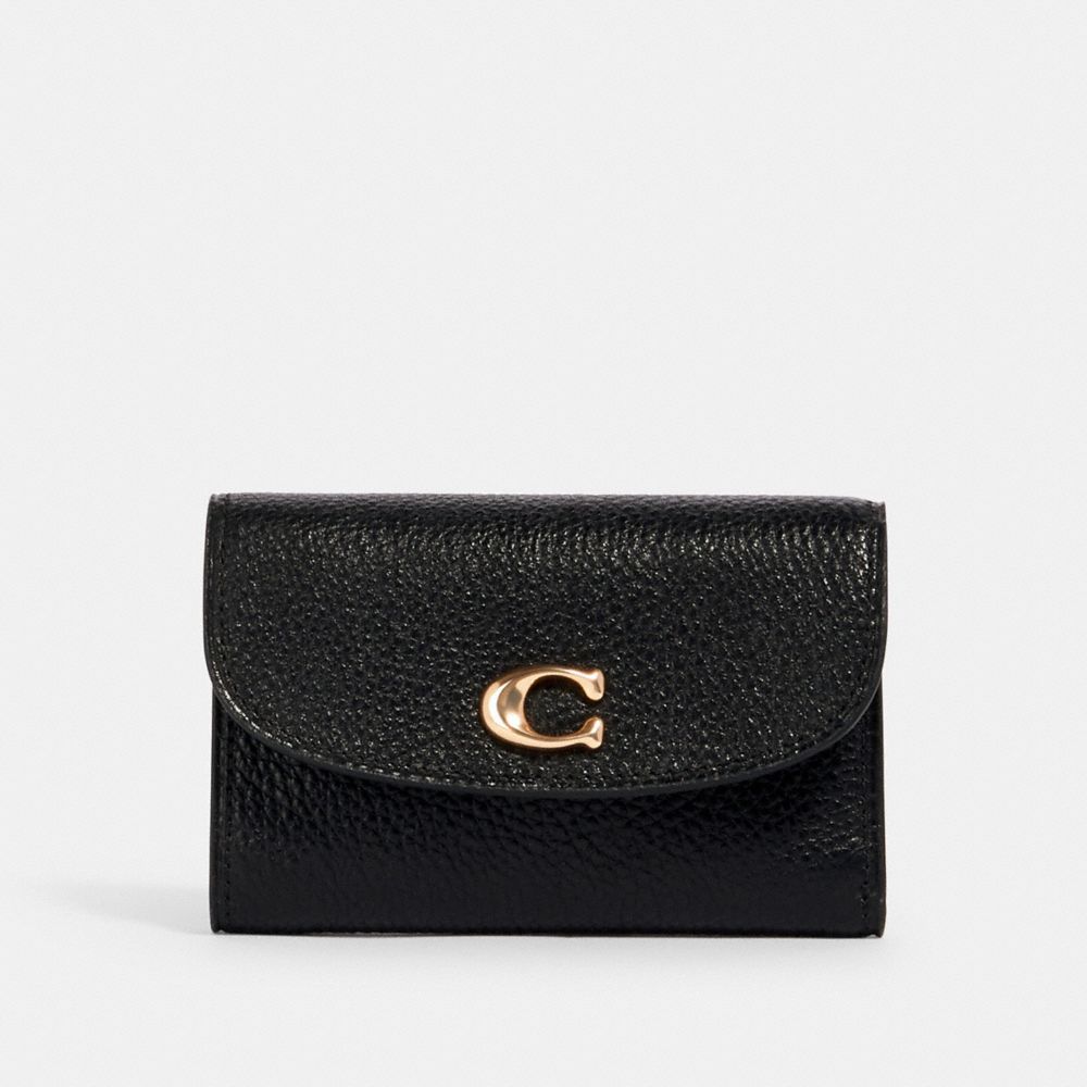 Refined pebble leather| Four credit card slots| Bill compartment| Inside zip coin pocket| Snap closure| Outside open pocket| 6" (L) x 3 3/4" (H) x 3/4" (W)