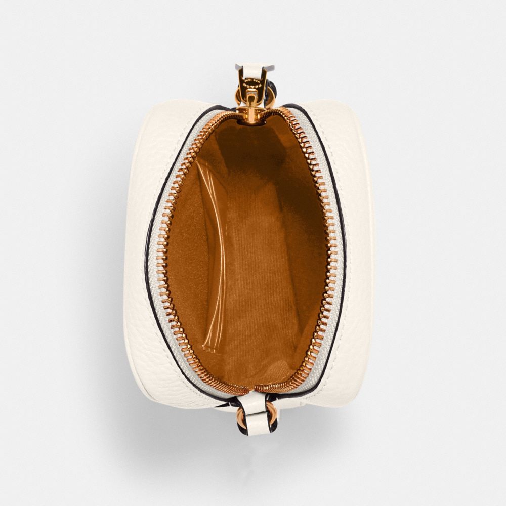 Refined pebble leather| Four credit card slots| Zip closure, fabric lining| Outside open pocket| Adjustable strap with 22" drop for shoulder or crossbody wear| 4 1/4" (L) x 7 1/2" (H) x 2" (W)