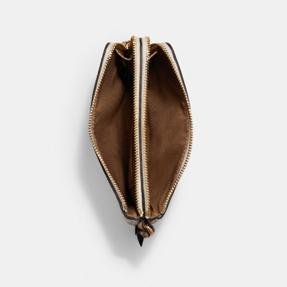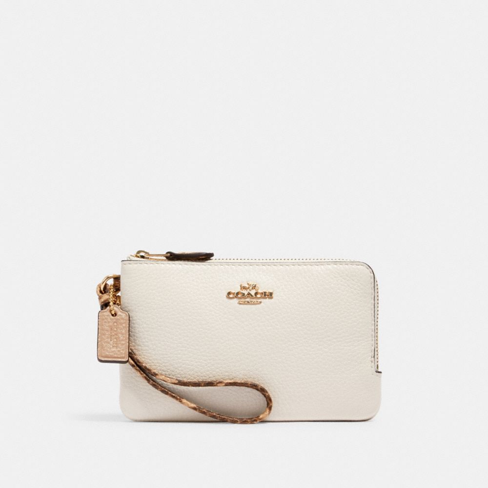 Refined pebble leather and snake-embossed leather| Two credit card slots| Double zip closure, fabric lining| Wrist strap attached| 6 1/2" (L) x 3 3/4" (H) x 1 3/4" (W)| Fits an iPhone or Android