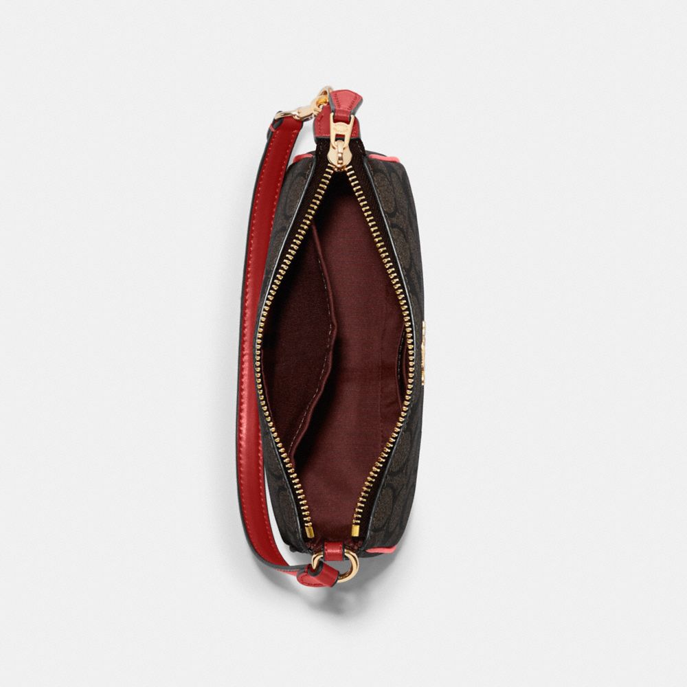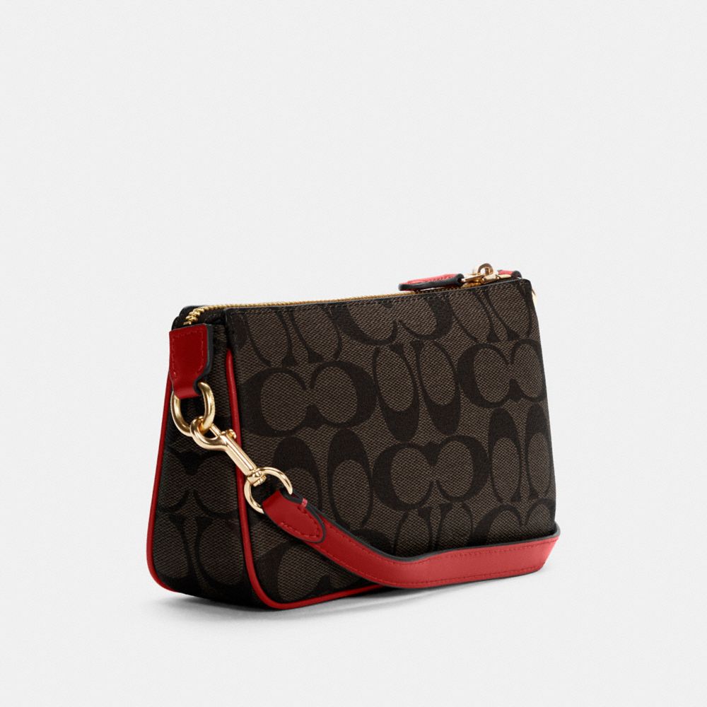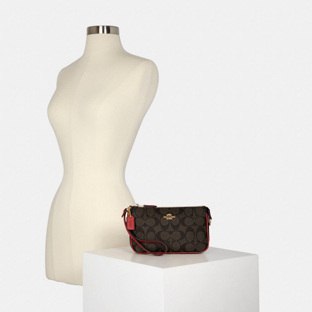 Signature coated canvas and smooth leather| Two credit card slots| Inside multifunction pocket| Zip-top closure, fabric lining| Handle with 6 1/4" drop| 7 1/2" (L) x 4 1/2" (H) x 2" (W)