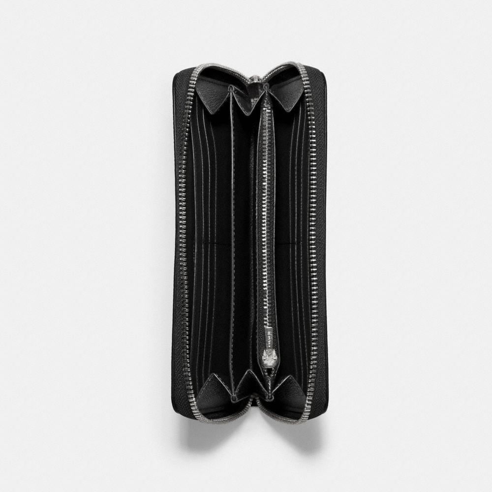 Crossgrain leather| Twelve credit card slots| Full-length bill compartments| Inside zip coin pocket| Zip-around closure| Detachable wrist strap| 7 1/2" (L) x 4" (H) x 1" (W)