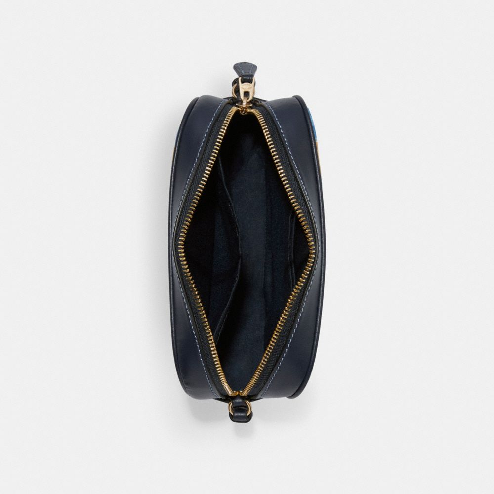 Signature jacquard and smooth leather| Two credit card slots| Inside multifunction pocket| Zip closure, fabric lining| Outside open pocket| Adjustable strap with 23" drop for shoulder or crossbody wear| 7 1/4" (L) x 5 1/4" (H) x 2" (H)
