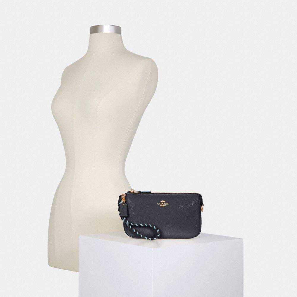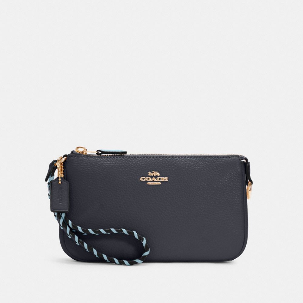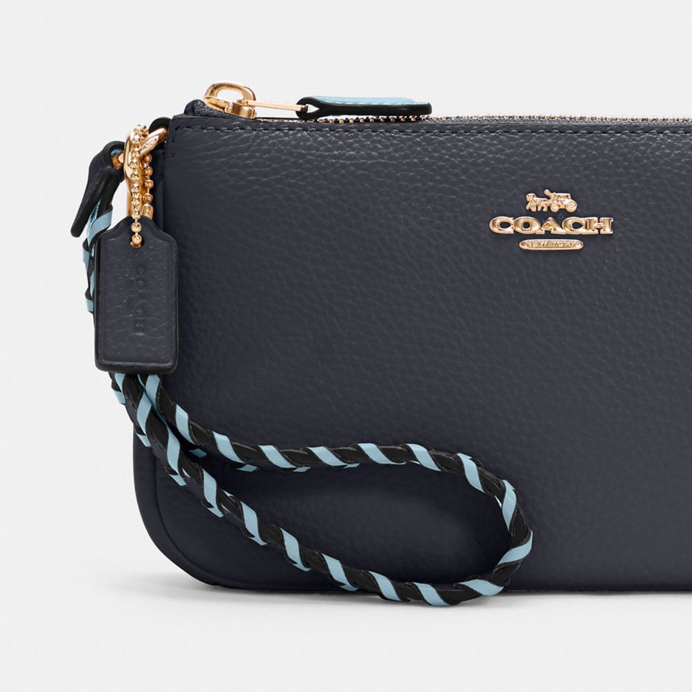 Refined pebble leather and smooth leather| Two credit card slots| Inside multifunction pocket| Zip-top closure, fabric lining| Handle with 6 1/4" drop| 7 1/2" (L) x 4 1/2" (H) x 2" (W)
