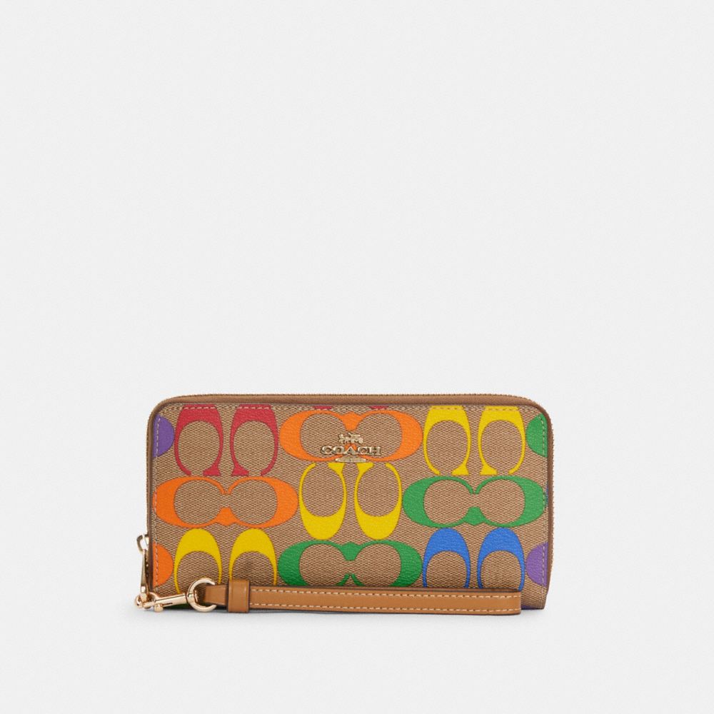 Signature coated canvas and smooth leather| Twelve credit card slots| Full-length bill compartments| Inside zip coin pocket| Zip-around closure| Detachable wrist strap| 7 1/2" (L) x 4" (H) x 1" (W)| Coach celebrates the LGBTQIA+ community this month and every month. This year the Coach Foundation has made donations to the Hetrick-Martin Institute (our longstanding partner), Albert Kennedy Trust, and new partners Point Foundation and CenterLink Community of LGBTQ Centers. All four organizations create supportive environments where LGBTQIA+ young people can find community. To learn more, visit coach.com/DreamItReal.