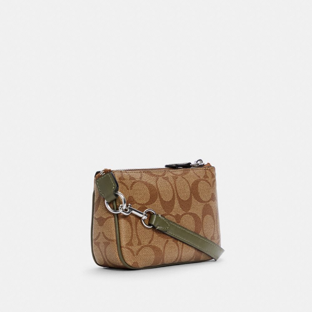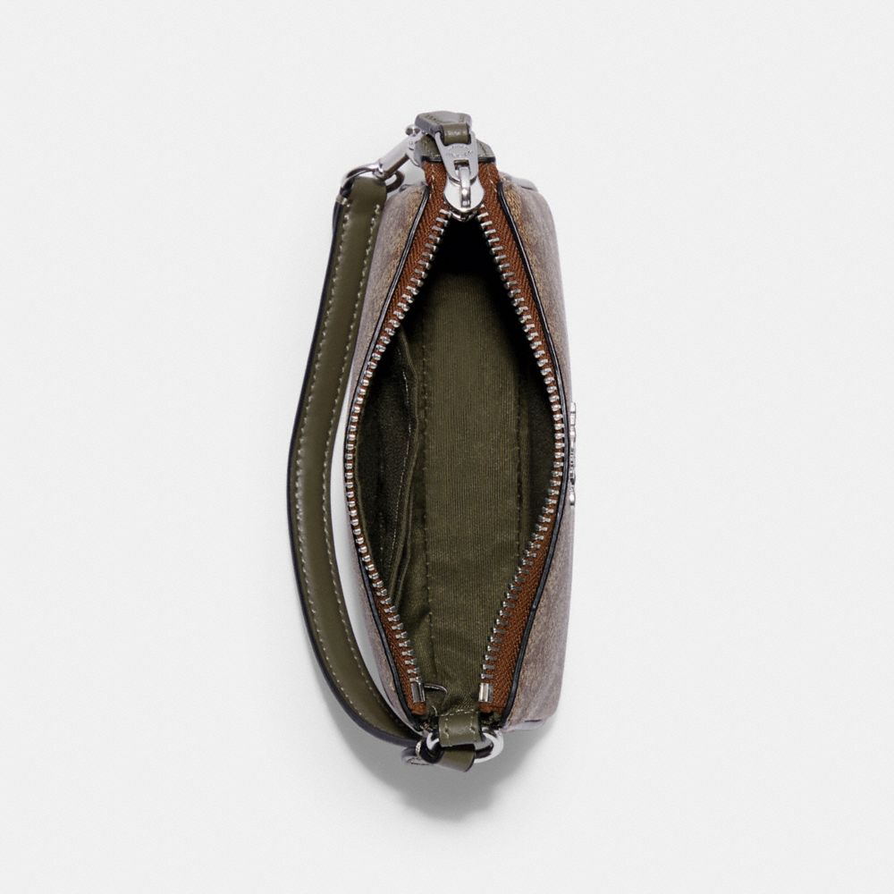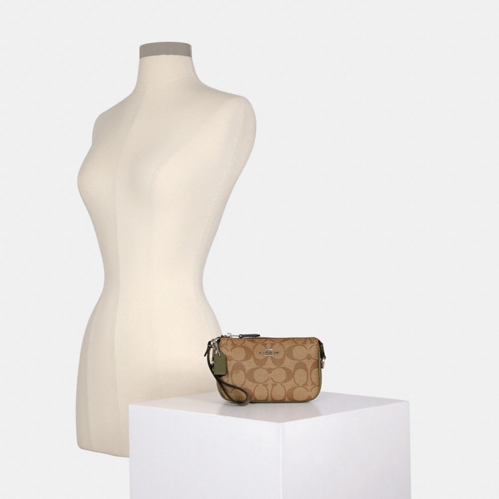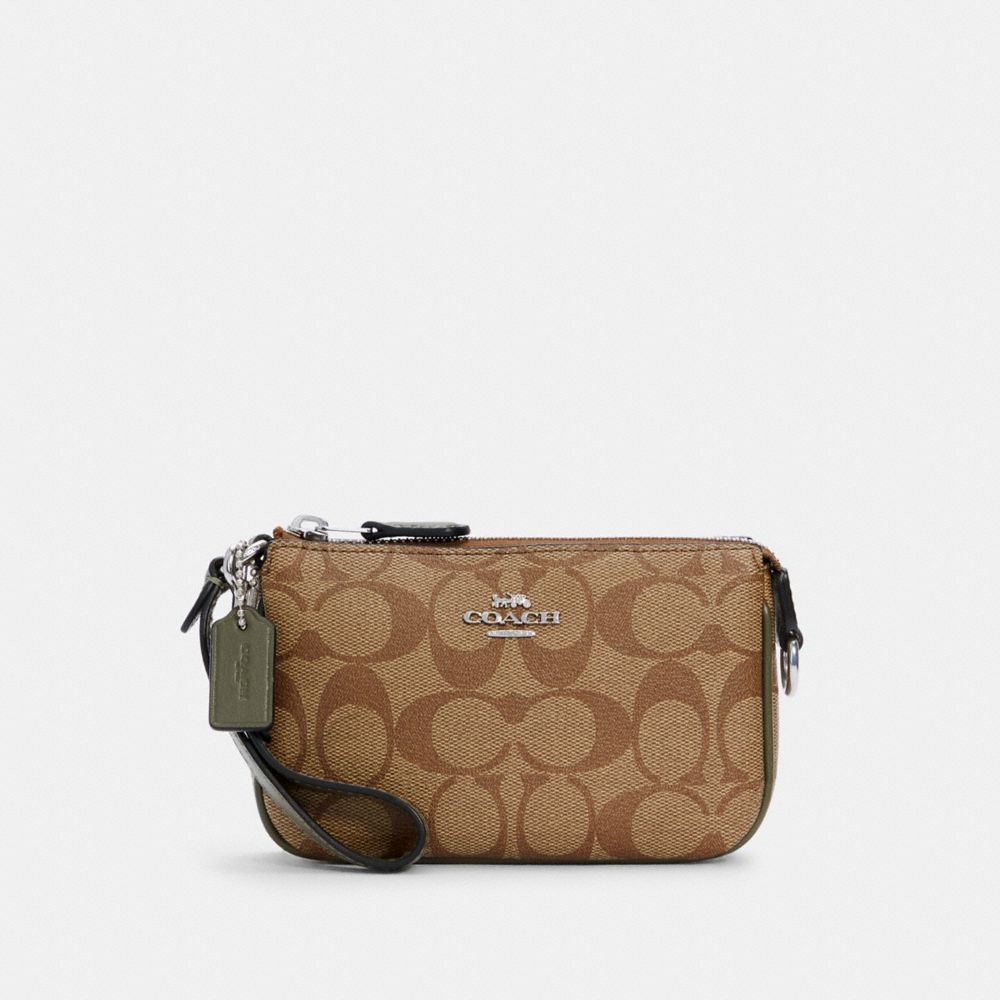 Signature coated canvas and smooth leather| Two credit card slots| Zip-top closure, fabric lining| Handle with 4 1/2" drop| 6" (L) x 4" (H) x 1 1/2" (W)