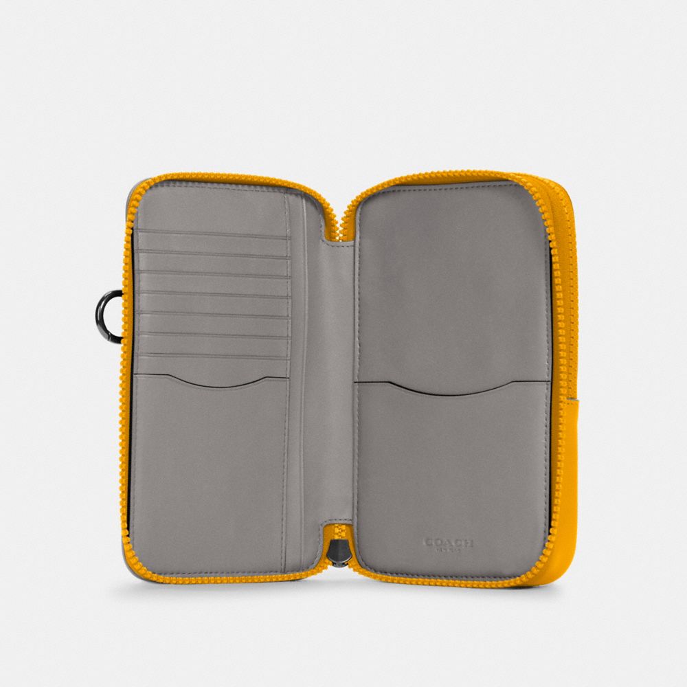 Smooth calf leather| Nine credit card slots| Inside open pockets| Zip closure| Outside zip and slip pockets| Snap strap keeper| Attached hinged key ring | 4 1/4" (L) x 7 1/2" (H) x 1 1/2" (W)