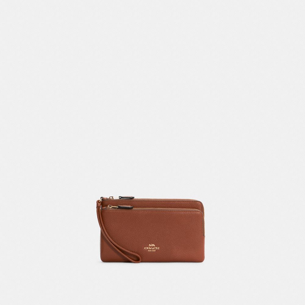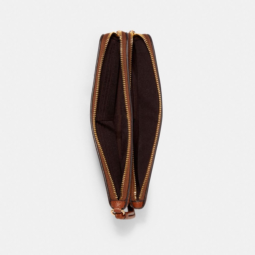 Refined pebble leather| Six credit card slots| Full-length bill compartment| Inside open pockets| Double zip closure, fabric lining| Wrist strap attached| 8" (L) x 4 3/4" (H) x 1 1/4" (W)| Fits all phone sizes up to an iPhone X and Samsung S7 Edge