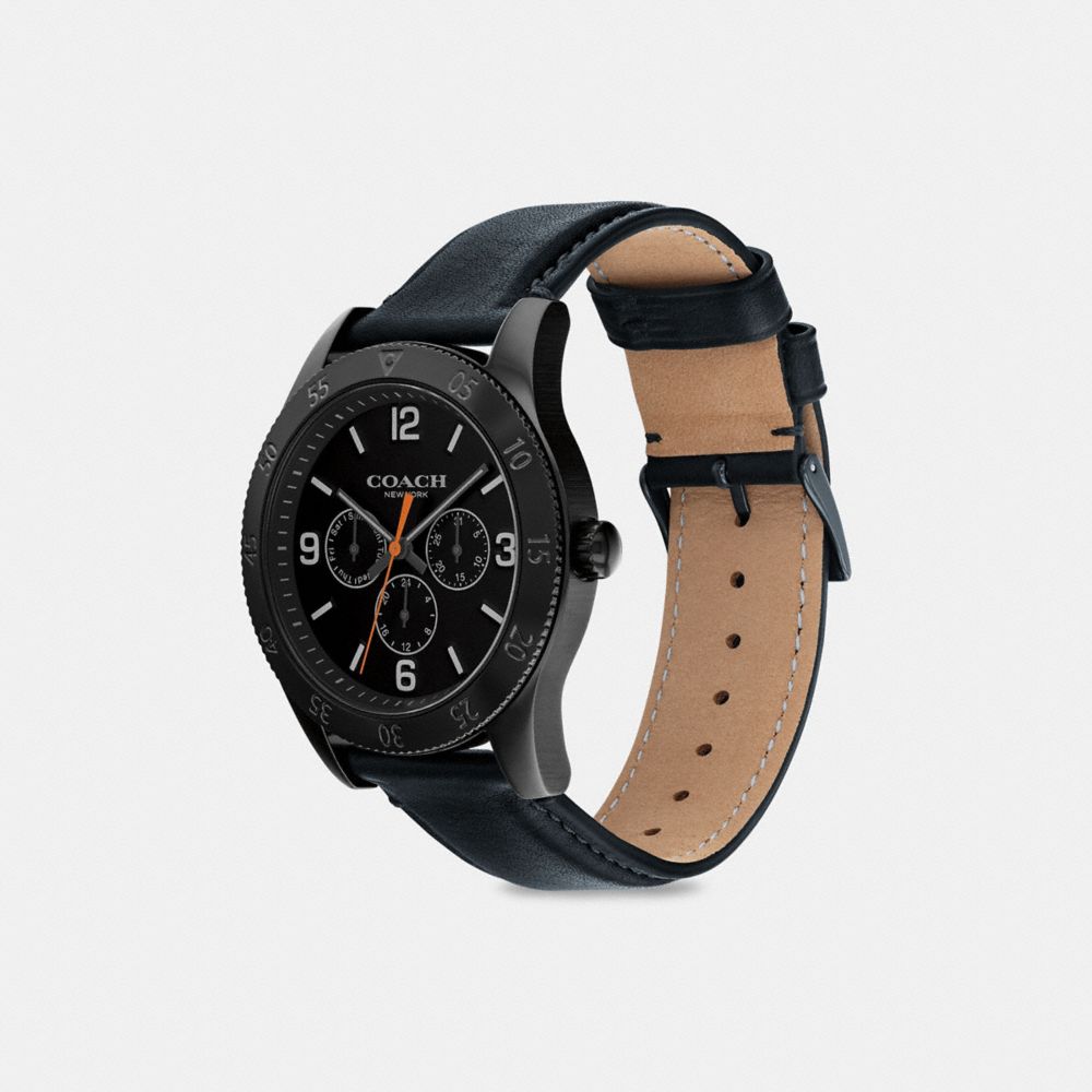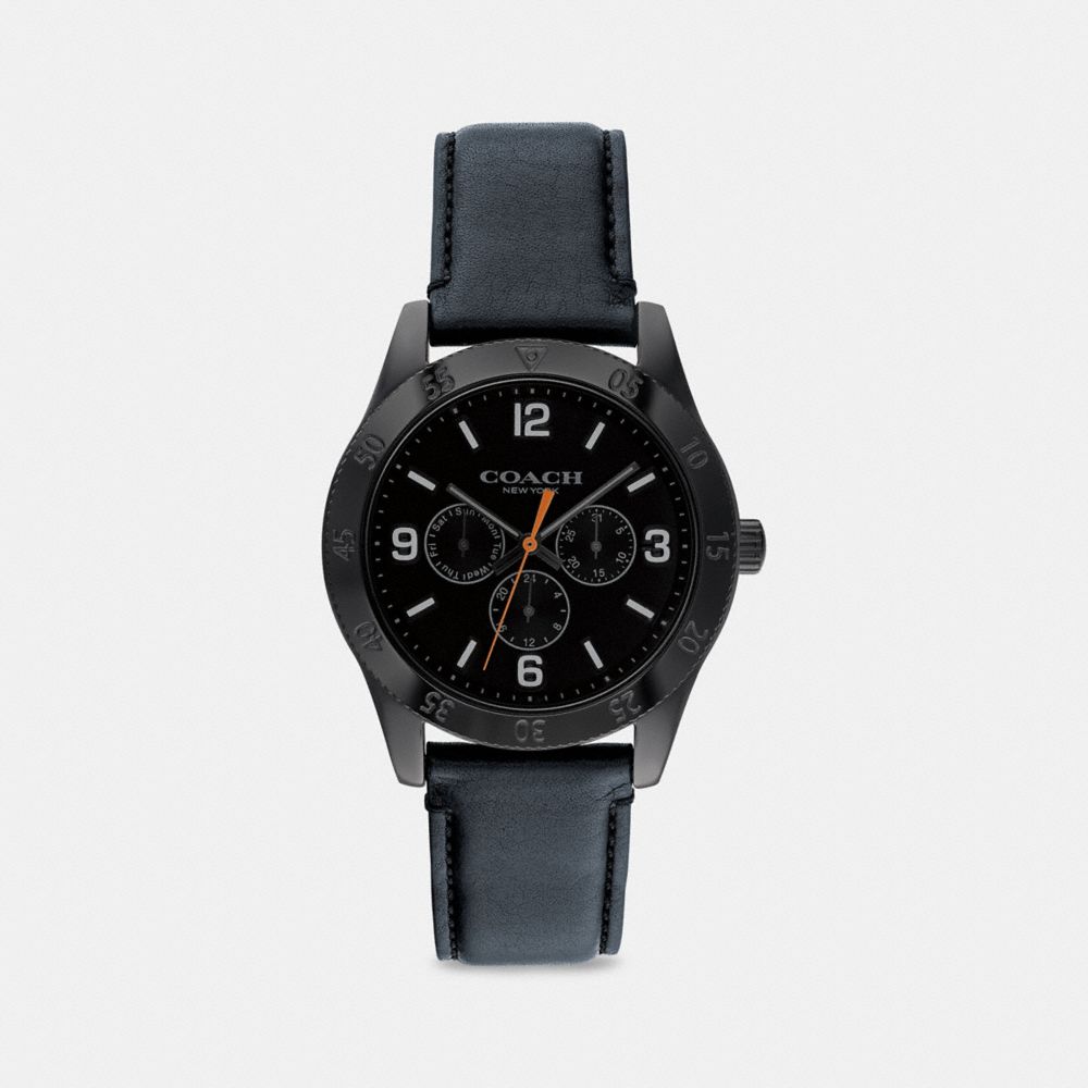 Ionized plated case and leather strap| Interchangeable leather strap included| Approx. case diameter: 42mm| Mineral crystal| Quartz movement| Buckle closure | Water-resistant to 99 feet