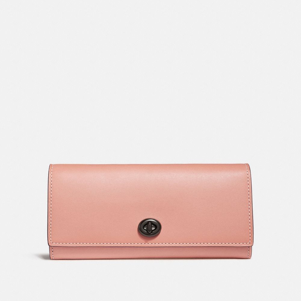 Glovetanned leather| Ten credit card slots| Full-length bill compartment| Zip coin pocket| Turnlock closure| Outside open pocket| 7 3/4" (L) x 3 1/2" (H)