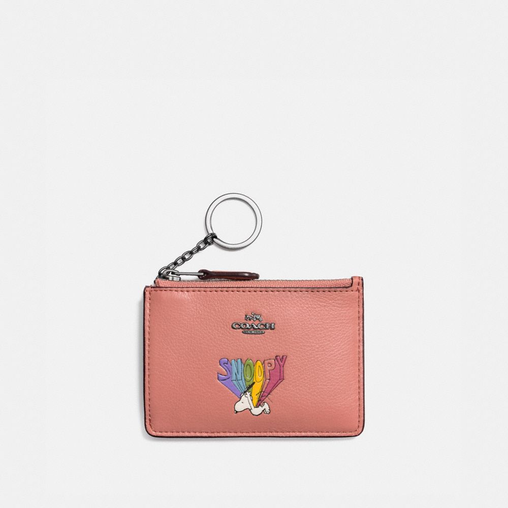Refined natural pebble leather| Credit card slot and ID window| Zip-top closure, fabric lining| Attached split key ring| 4 1/4" (L) x 3" (H)| Packaged in a Coach gift box| Limited-Edition Coach x Peanuts® collection