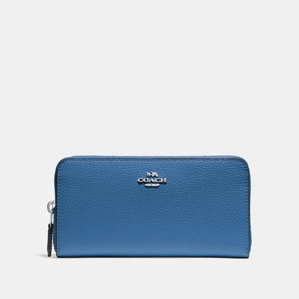 | Polished pebble leather| 12 credit card slots| Full-length bill compartments| Zip coin pocket| Zip-around closure| 7 1/2" (L) x 4" (H) x 3/4" (W)| Fits all phone sizes up to an iPhone X and Samsung S7 Edge