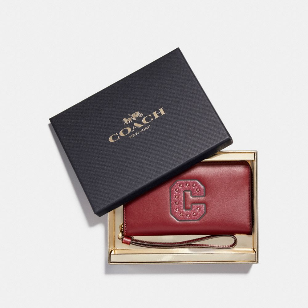 BOXED PHONE WALLET WITH GLITTER C PATCH