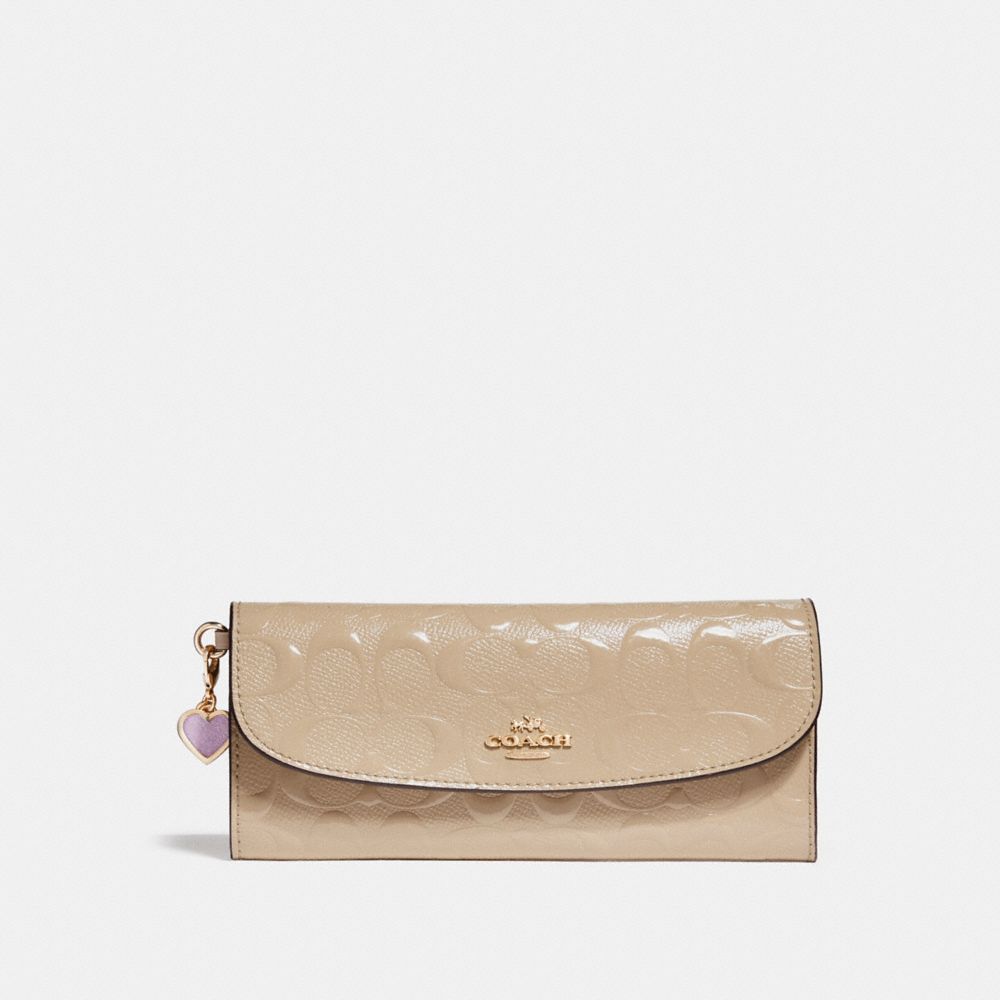 Signature debossed patent leather