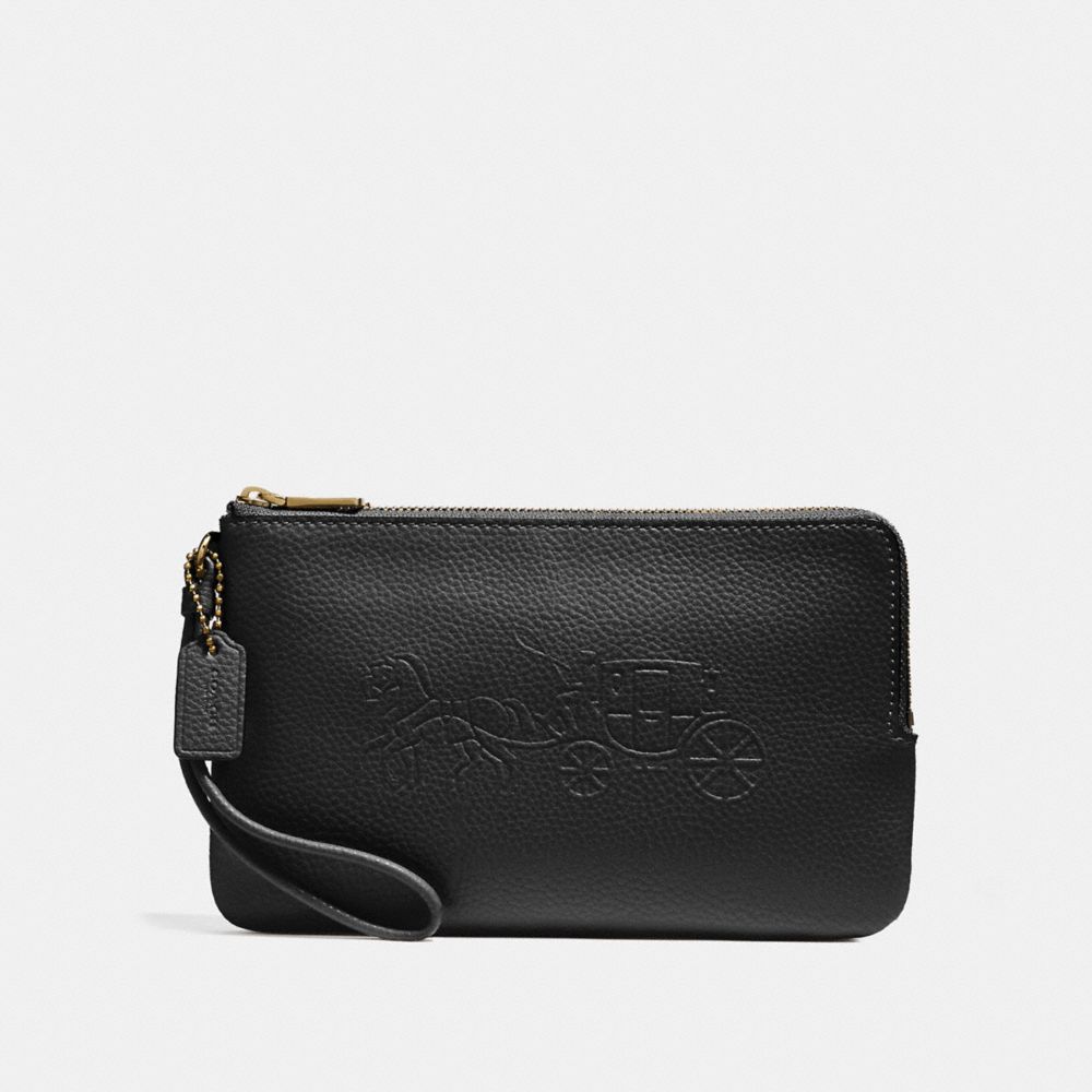 DOUBLE ZIP WALLET WITH EMBOSSED HORSE AND CARRIAGE