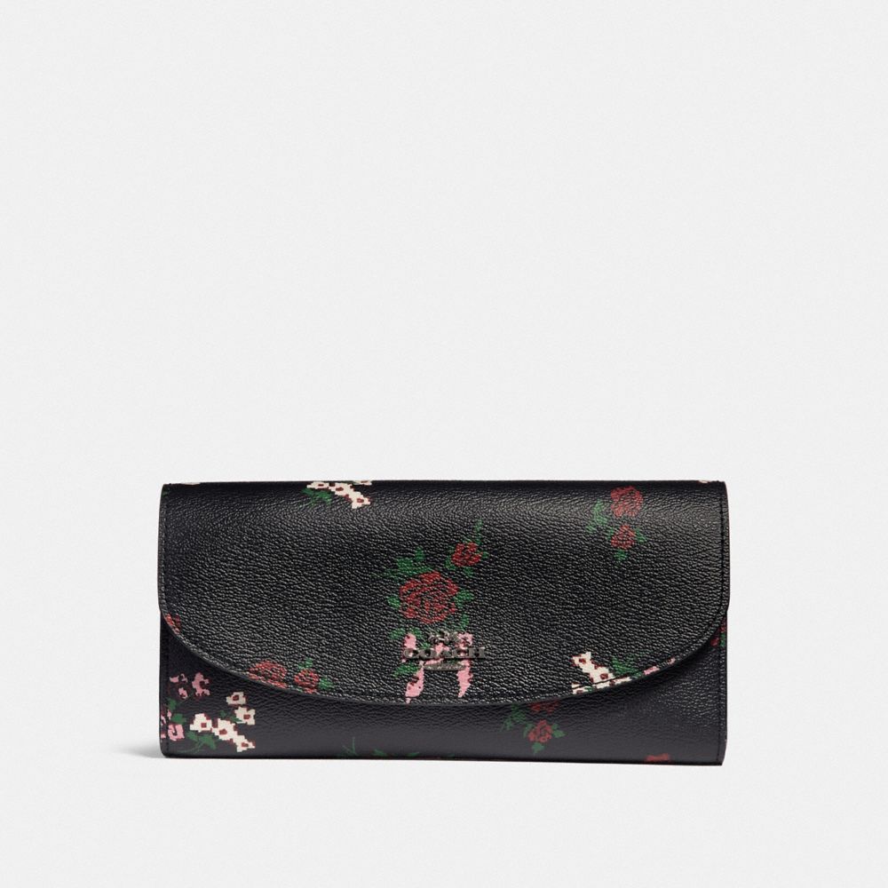 SLIM ENVELOPE WALLET WITH CROSS STITCH FLORAL PRINT