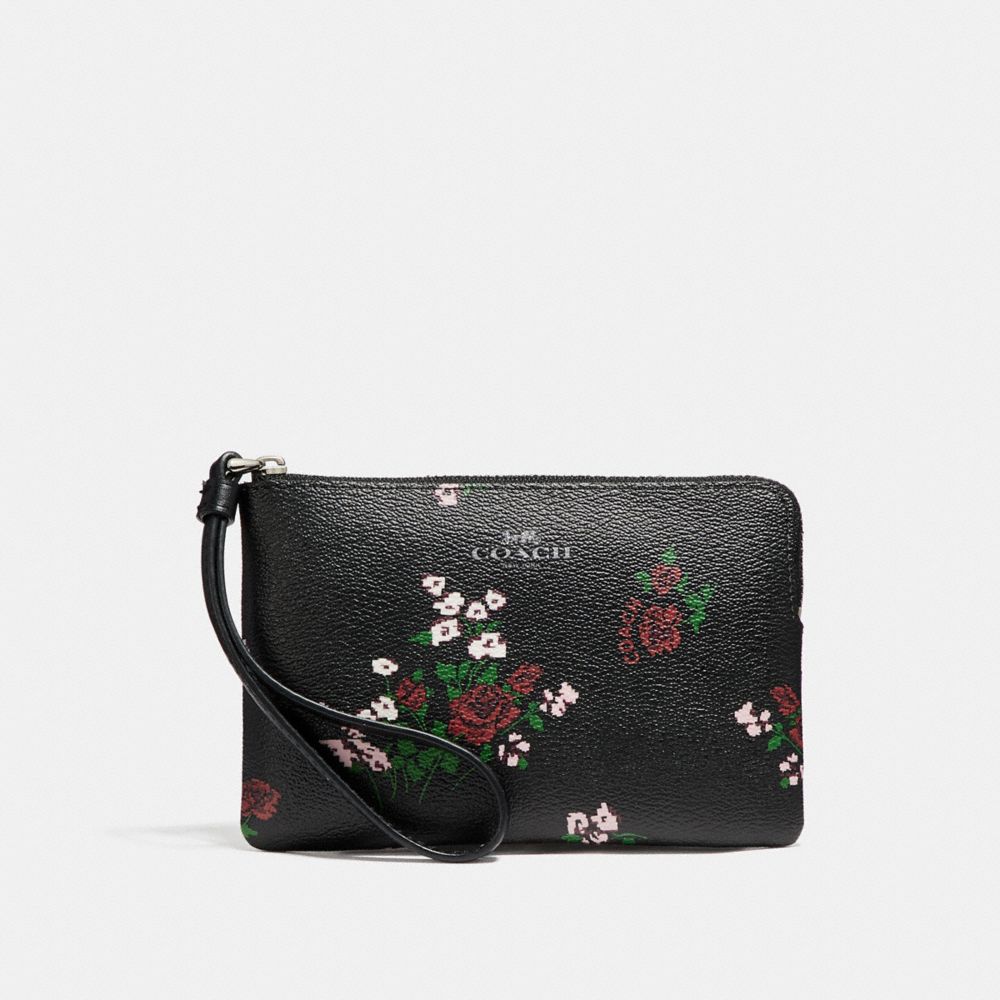 CORNER ZIP WITH CROSS STITCH FLORAL PRINT
