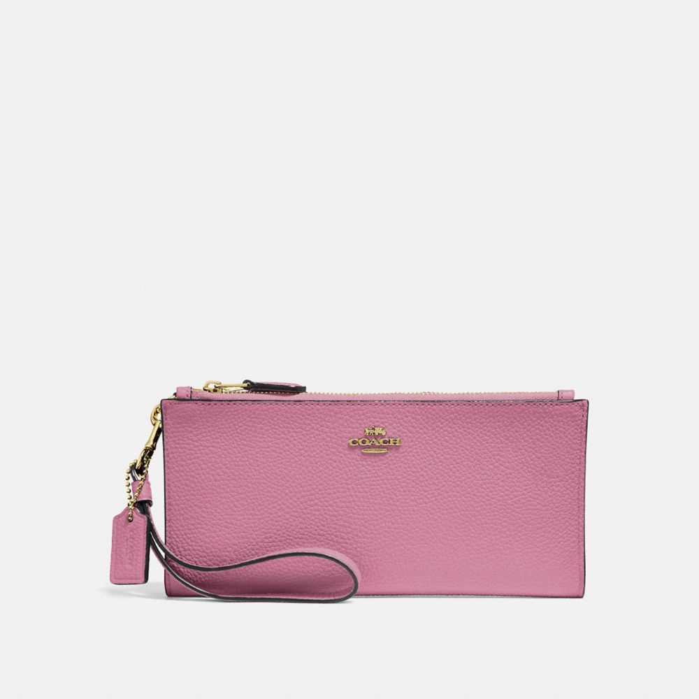 Polished pebble leather| Twelve credit card slots| Full-length bill compartments| Snap closure| Two outside zip pockets| Detachable wrist strap| 8 1/2" (L) x 4 1/2" (H) x 1 1/4" (W)| Fits all phone sizes up to an iPhone X and Samsung S7 Edge