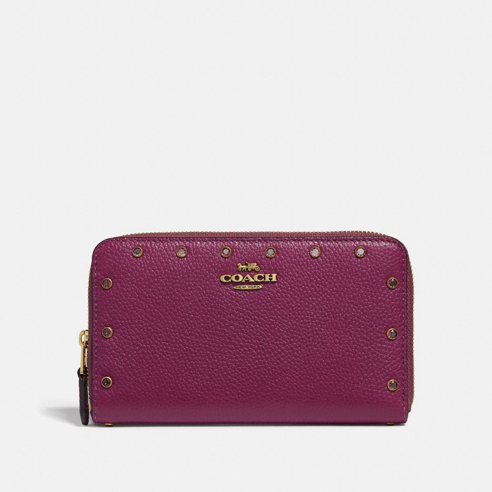 MEDIUM ZIP AROUND WALLET WITH CRYSTAL RIVETS