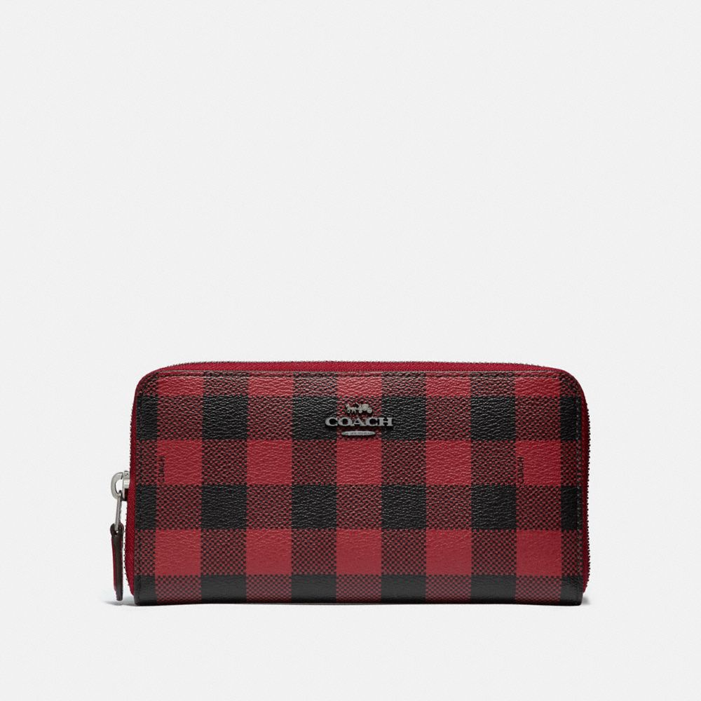 ACCORDION ZIP WALLET WITH GINGHAM PRINT