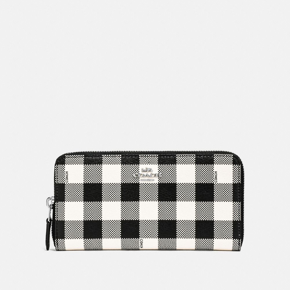 ACCORDION ZIP WALLET WITH GINGHAM PRINT