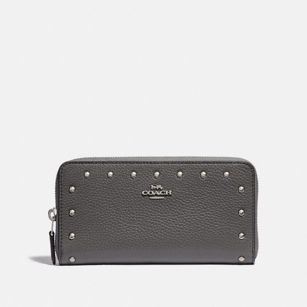 ACCORDION ZIP WALLET WITH LACQUER RIVETS