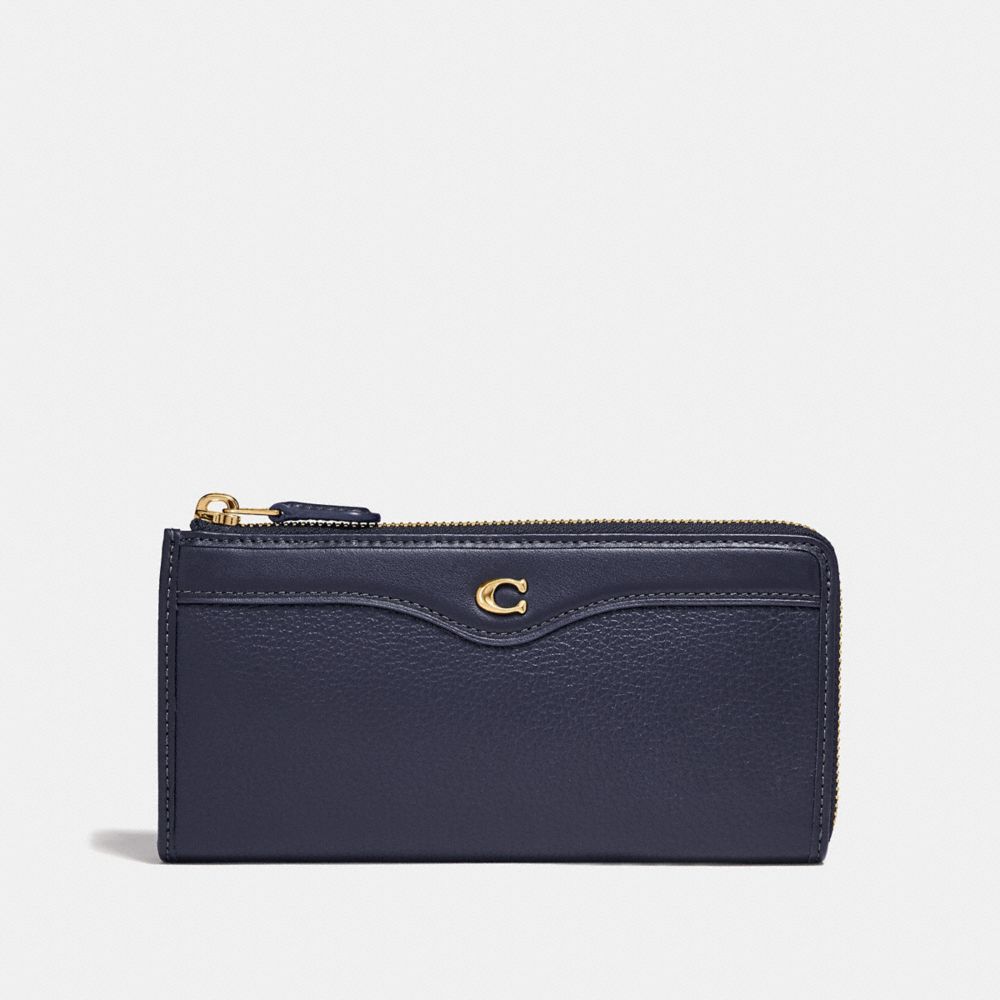 | Refined pebble leather and refined calf leather| 12 credit card slots| Full-length bill compartments| Zip coin pocket| Zip closure| 7 3/4" (L) x 3 3/4" (H) x 3/4" (W)