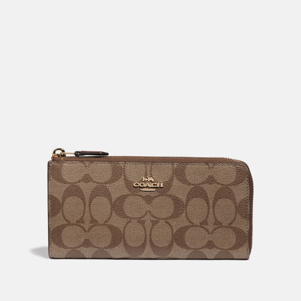 | Signature coated canvas with smooth leather details| 12 credit card slots| Full-length bill compartments| Zip coin pocket| Zip closure| 7 3/4" (L) x 3 3/4" (H) x 3/4" (W)