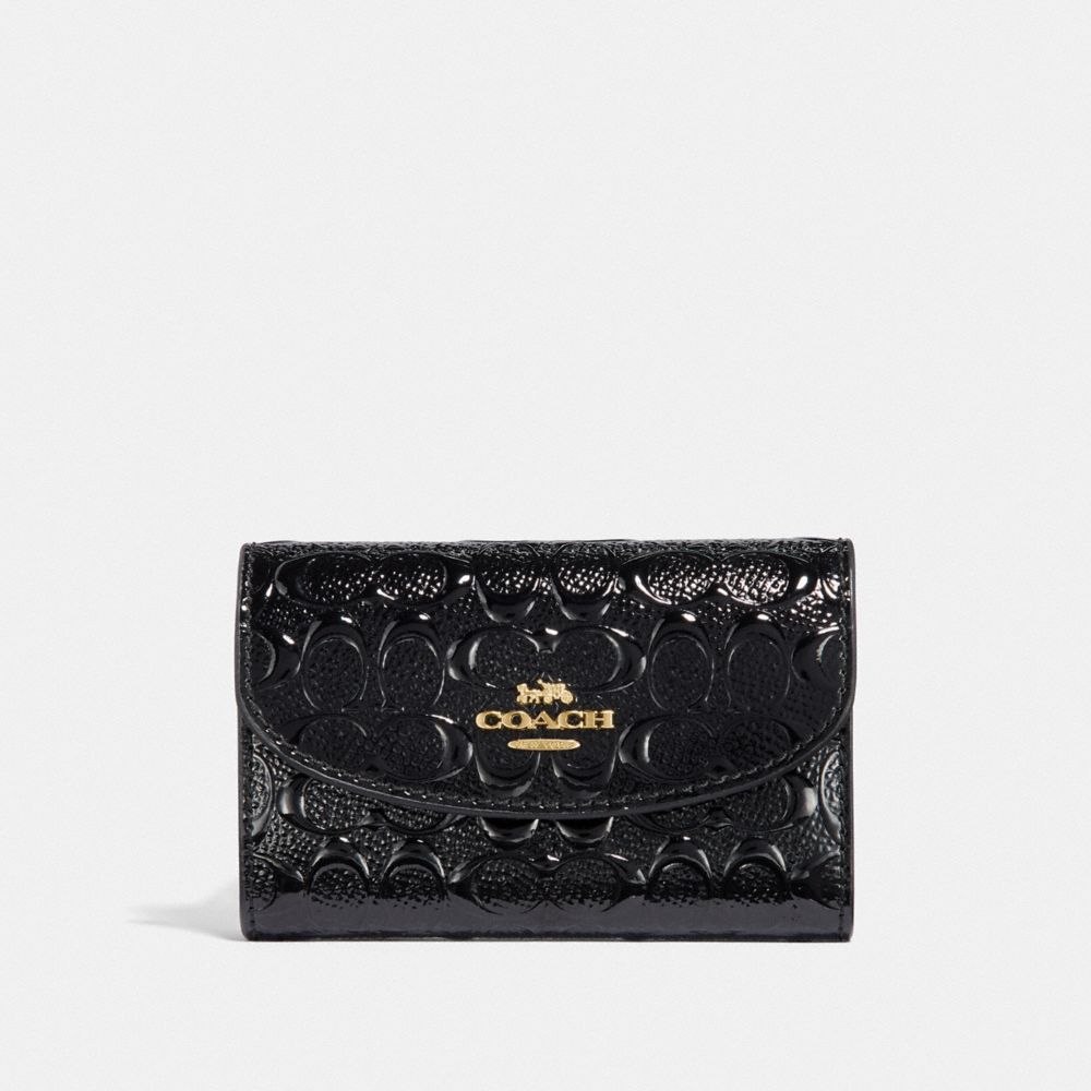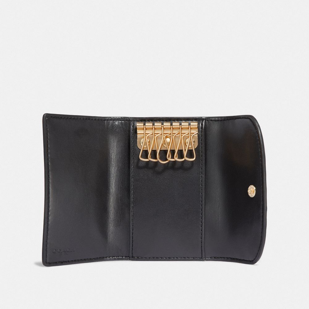Signature patent leather| Six key rings| Snap closure| 4 1/2" (L) x 3" (H) x 3/4" (W)| Packaged in a Coach gift box