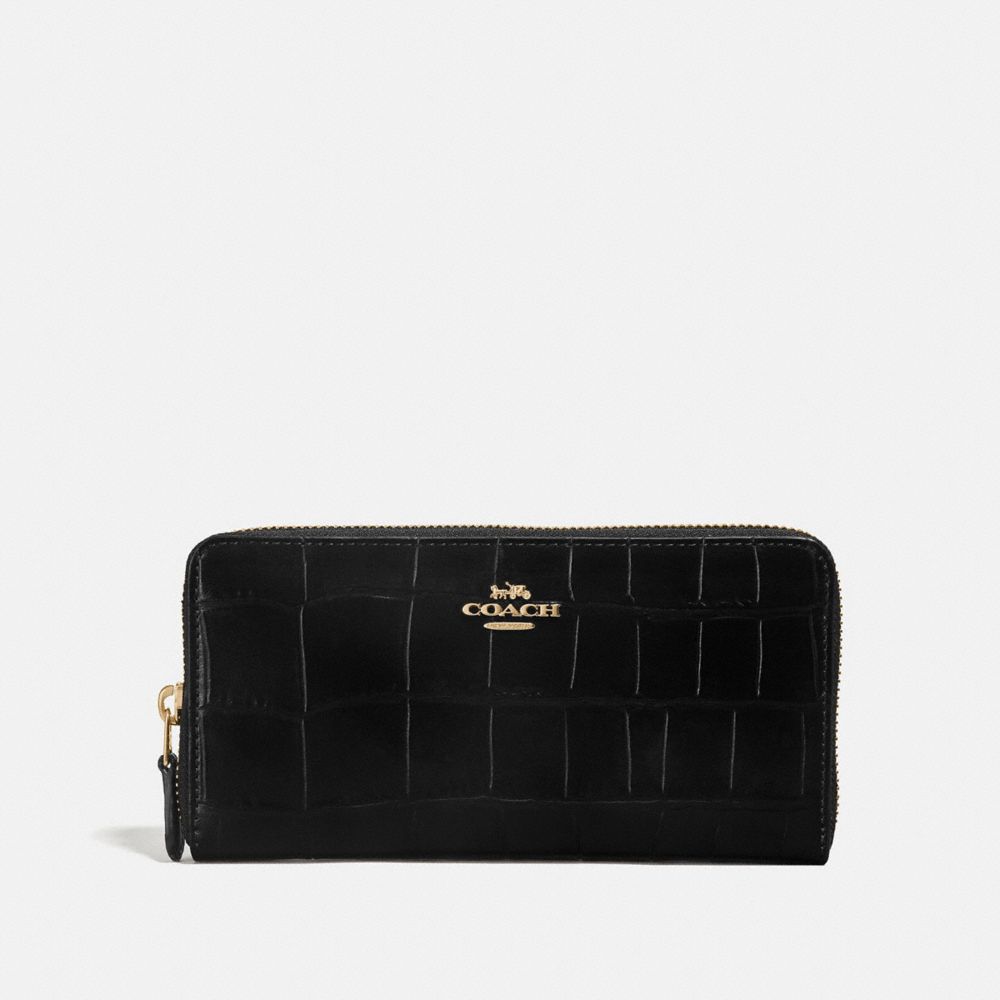 | Crocodile-embossed leather| 12 credit card slots| Full-length bill compartments| Zip coin pocket| Zip-around closure| 7 1/2" (L) x 4" (H) x 3/4" (W)| Fits all phone sizes up to an iPhone X and Samsung S7 Edge