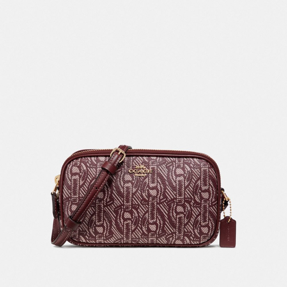 | Printed coated canvas| Two credit card slots| Inside multifunction pocket| Double zip closure, fabric lining| Adjustable strap with 23" drop for shoulder or crossbody wear| 7 1/2" (L) x 4 1/2" (H) x 1 1/2" (W)