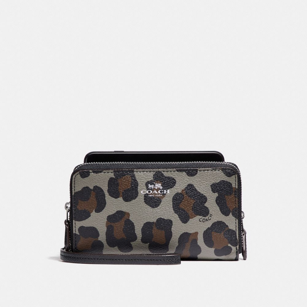 DOUBLE ZIP PHONE WALLET WITH OCELOT PRINT