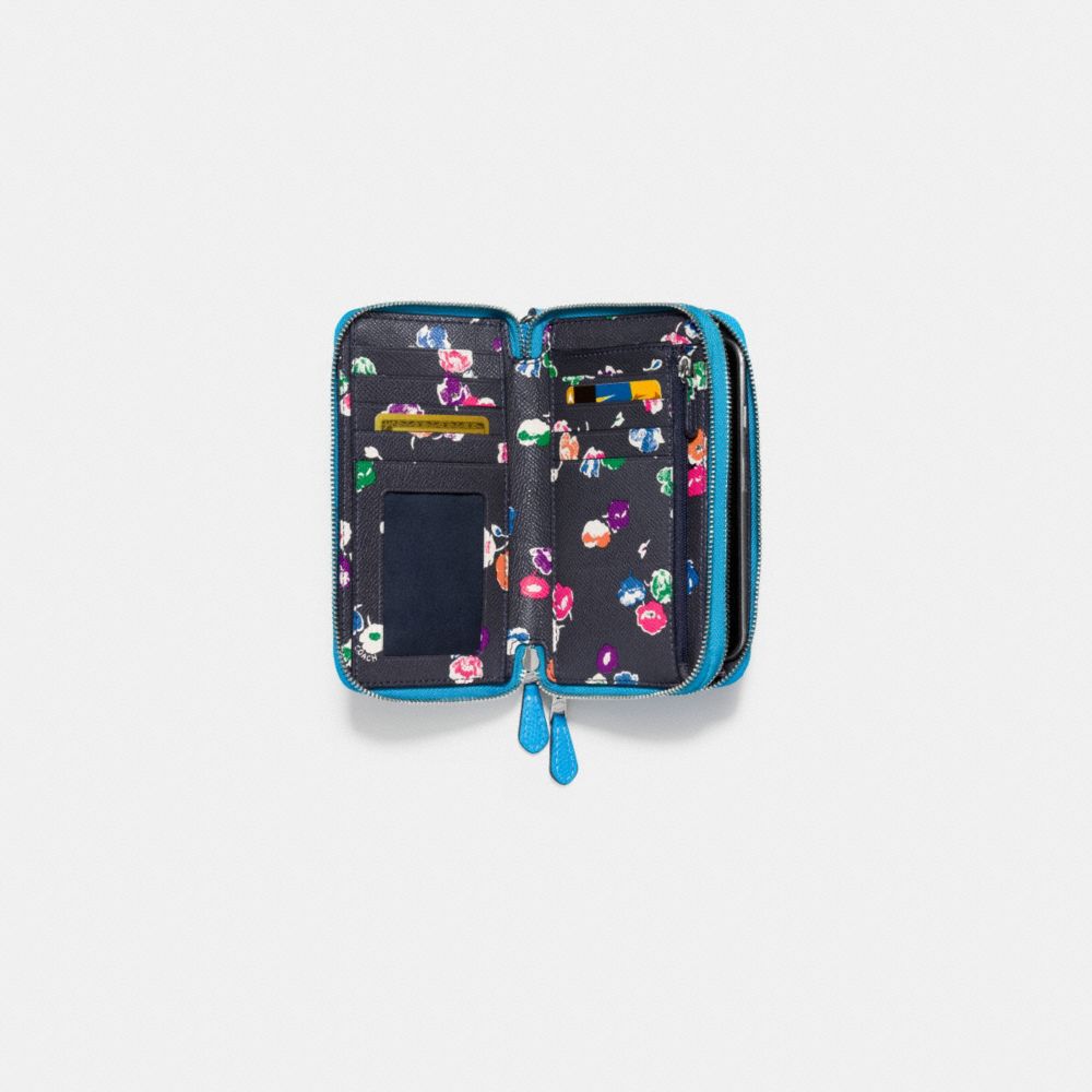 DOUBLE ZIP PHONE WALLET IN WILDFLOWER COATED CANVAS