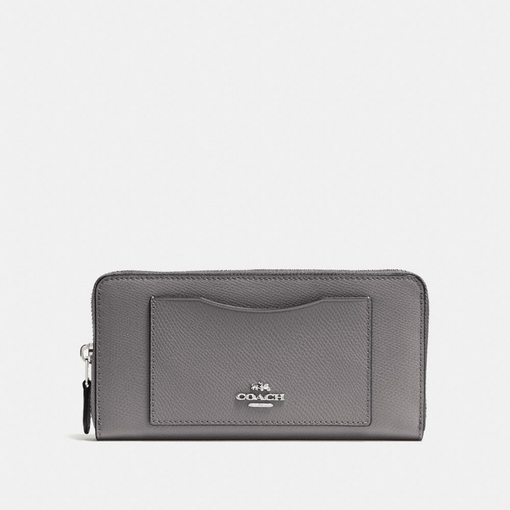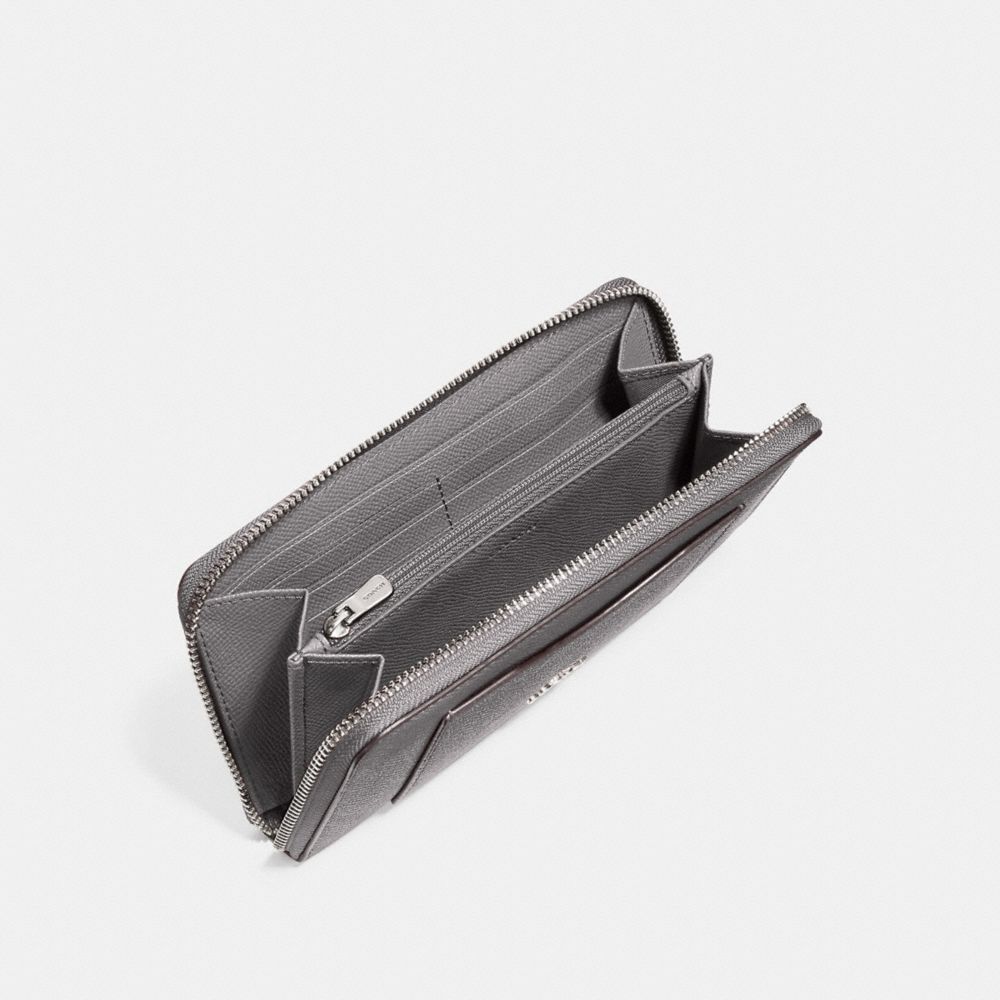 Crossgrain leather| 12 credit card slots| Full-length bill compartments| Zip coin pocket| Zip-around closure| Outside open pocket| 7 1/2" (L) x 4" (H) x 3/4" (W)| Fits all phone sizes up to an iPhone X and Samsung S7 Edge