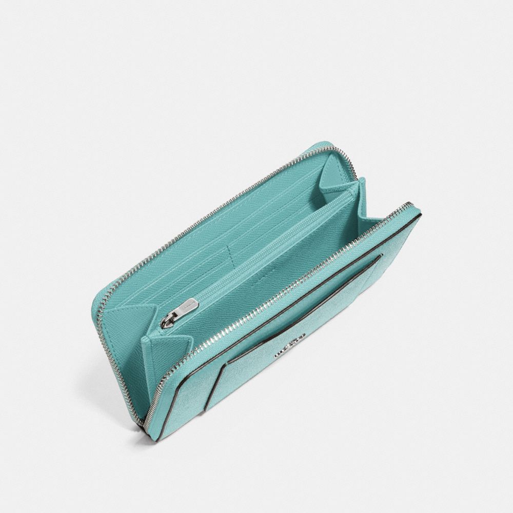 | Crossgrain leather| 12 credit card slots| Full-length bill compartments| Zip coin pocket| Zip-around closure| Outside open pocket| 7 1/2" (L) x 4" (H) x 3/4" (W)| Fits all phone sizes up to an iPhone X and Samsung S7 Edge