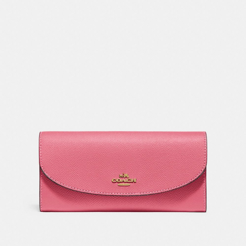 | Crossgrain leather| 12 credit card slots| Full-length bill compartment| Zip coin pocket| Snap closure | Outside open pocket| 7 3/4" (L) x 4" (H) x 3/4" (W)