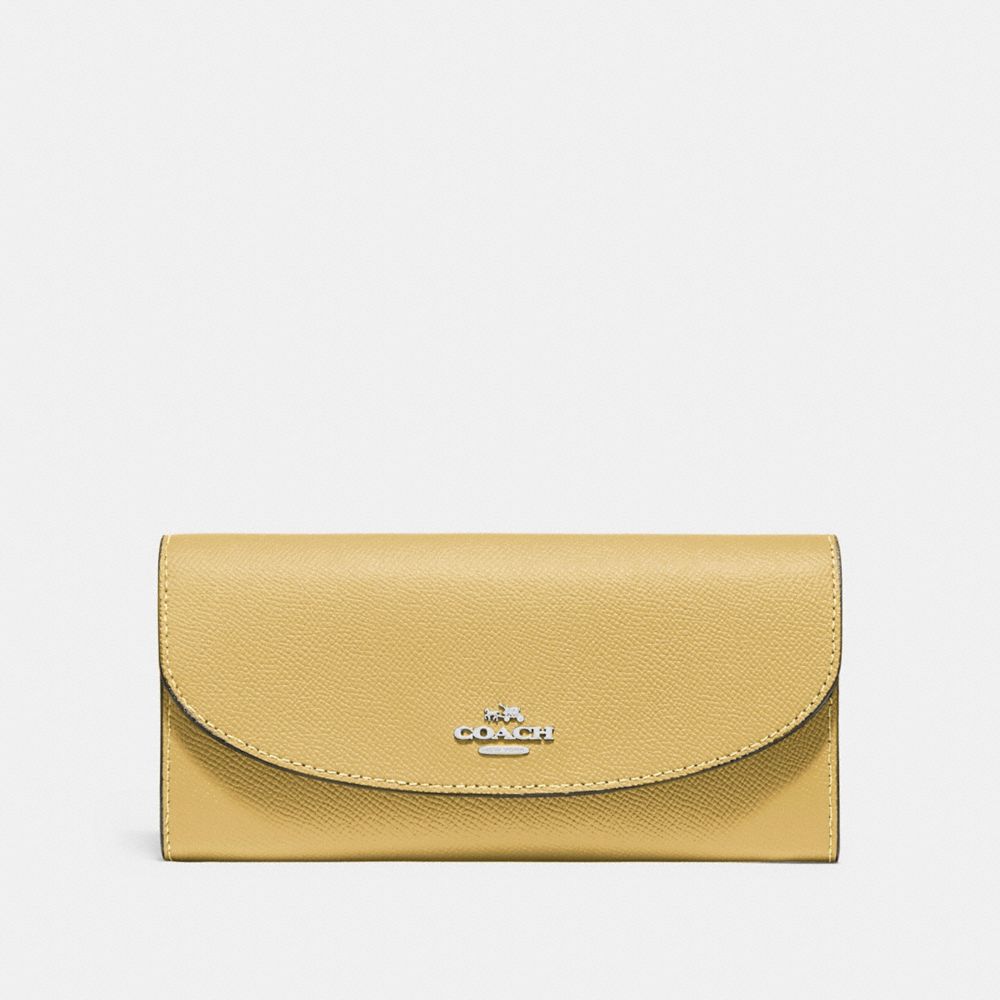 | Crossgrain leather| 12 credit card slots| Full-length bill compartment| Zip coin pocket| Snap closure | Outside open pocket| 7 3/4" (L) x 4" (H) x 3/4" (W)