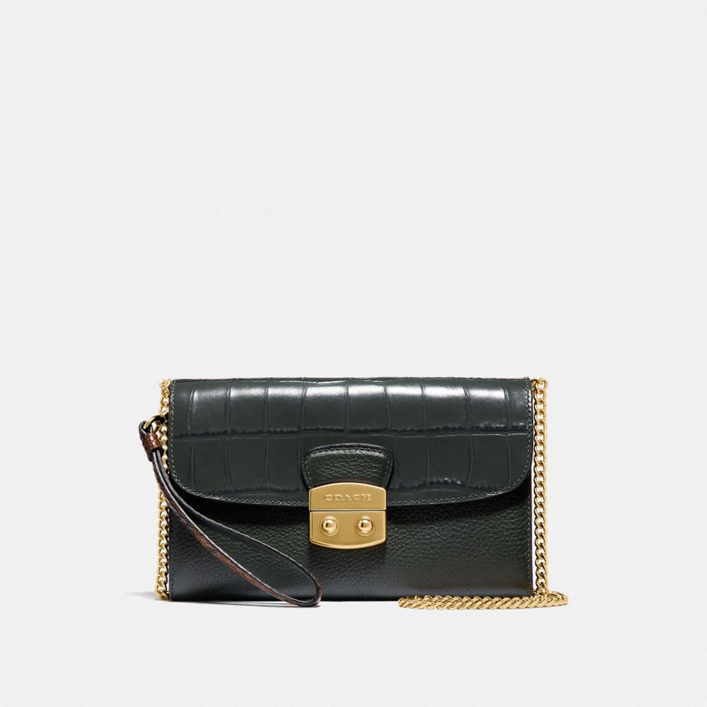 | Refined pebble leather, crocodile-embossed leather and snake-embossed leather| Ten credit card slots| Full-length bill compartment| Inside zip compartment| Push lock closure, fabric lining| Detachable wrist strap| Outside slip pocket| Detachable long strap with 22" drop for shoulder or crossbody wear| 8" (L) x 5" (H) x 3/4" (W)