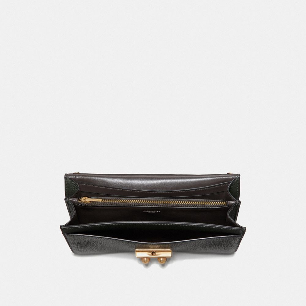 | Refined pebble leather, crocodile-embossed leather and snake-embossed leather| Ten credit card slots| Full-length bill compartment| Inside zip compartment| Push lock closure, fabric lining| Detachable wrist strap| Outside slip pocket| Detachable long strap with 22" drop for shoulder or crossbody wear| 8" (L) x 5" (H) x 3/4" (W)
