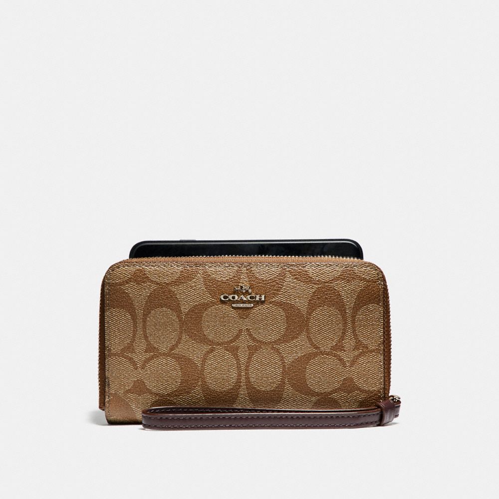 PHONE WALLET IN SIGNATURE COATED CANVAS