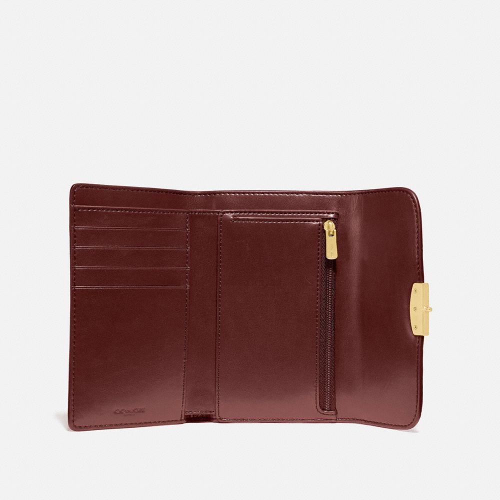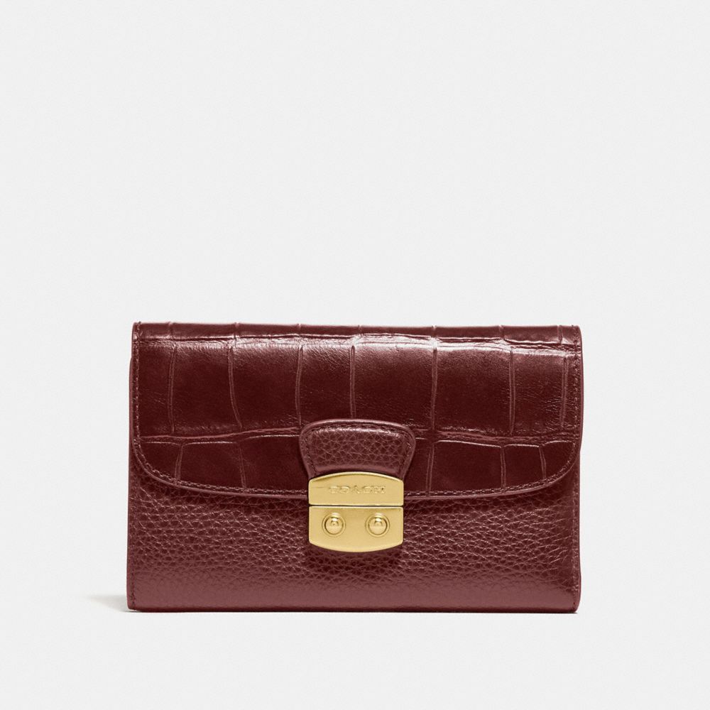 | Crocodile-embossed leather and refined pebble leather| Four credit card slots| Bill compartment| Inside zip coin pocket| Snap closure| Outside open pocket| 6" (L) x 3 3/4" (H) x 3/4" (W)