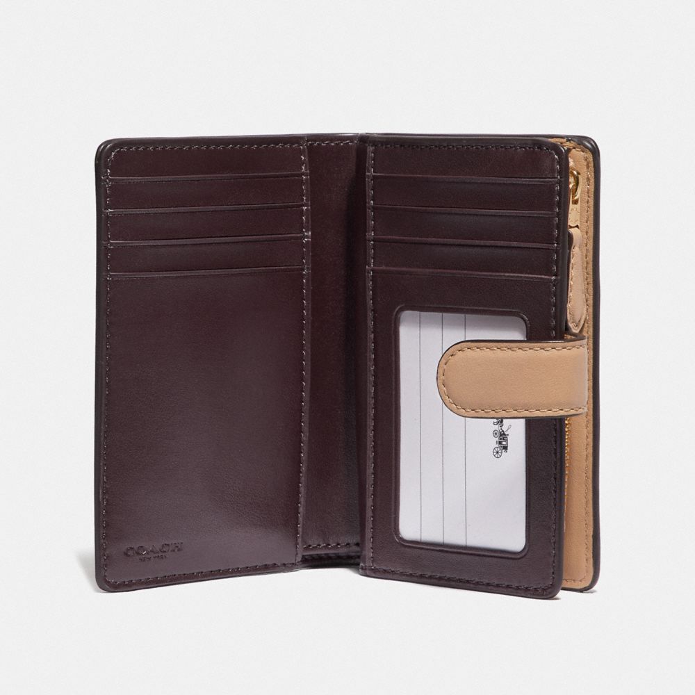 | Signature smooth calf leather| Seven credit card slots| Bill compartment| ID window| Zip pocket| Snap closure| 5" (L) x 3 1/2" (H) x 1/2" (W)